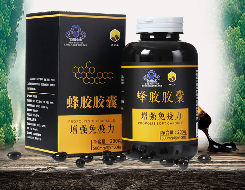 蜂胶胶囊 500mg/粒*400粒*2瓶套餐增免疫力